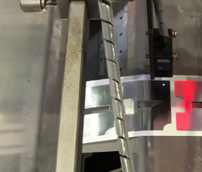 拉料機構通過基恩士電眼與施耐德伺服電機以及直驅膠輥配合定位麥拉走料位置;